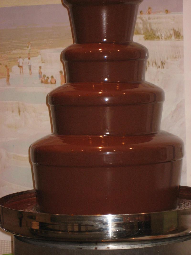 Calling all chocoholics -- look at this four tier chocolate fountain that the Turkish worker would dip the vanilla ice cream into!
